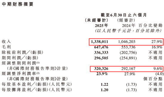 2025年上半年,公司业绩增速放缓,收入同比增长27.9%,经调整期间利润同比增长9.6%。公司毛利率同比下降超过4个百分点。